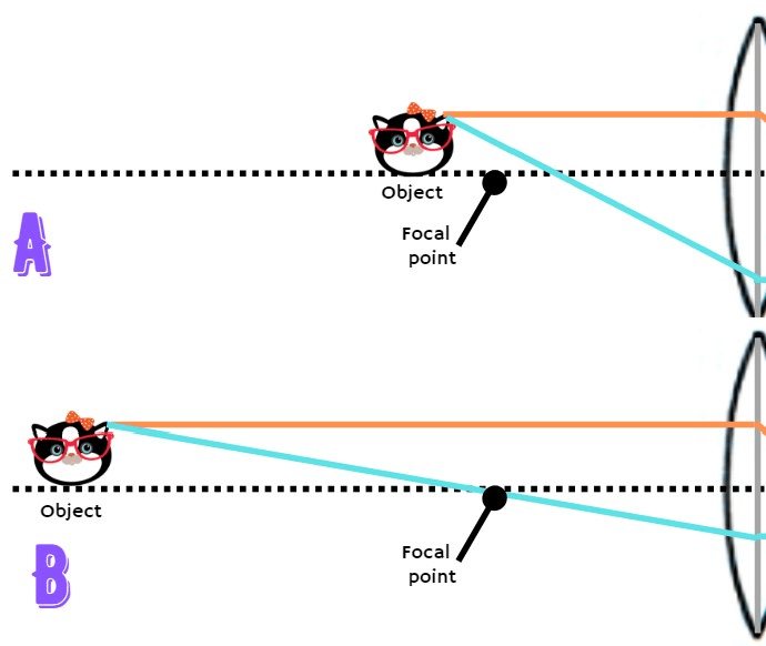 When an object moves further from the focal point and further from a double convex lens the object will appear:(Smaller or bigger) and (Right-side up or Upside down).