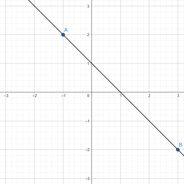 What is the slope of a line that connects the points  (-1/2,3) and  (3,-1) ?