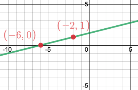 Write the equation of the line passing through the points (6, 0) and (3, -4).