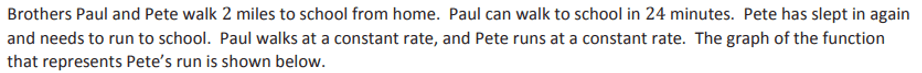 Martha is biking home at a constant speed of 15 miles every 3 hours. If she starts 7 miles from home, write an equation that shows her distance as a function of time.