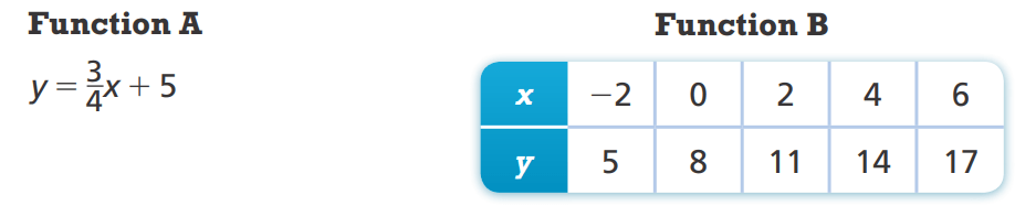 Which function has the Steeper slope, Which function has the smaller y-intercept.