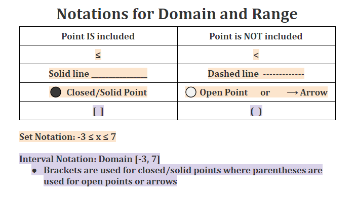 If a point is INCLUDED, such as a solid line or solid dot, what math symbol do we use?