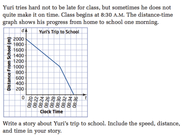 1. From 8:18 to 8:30 Yuri travels at 80m/min, for 1000 m.