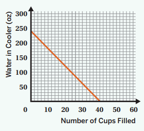A water cooler starts with 240 oz of water. The water decreases as it fills up cups with 6 oz per cup. What does the vertical (y)-intercept represent in this situation?