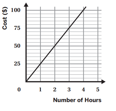 Here is a graph that represents the cost, y, of renting a space for x hours. What equation represents this relationship?