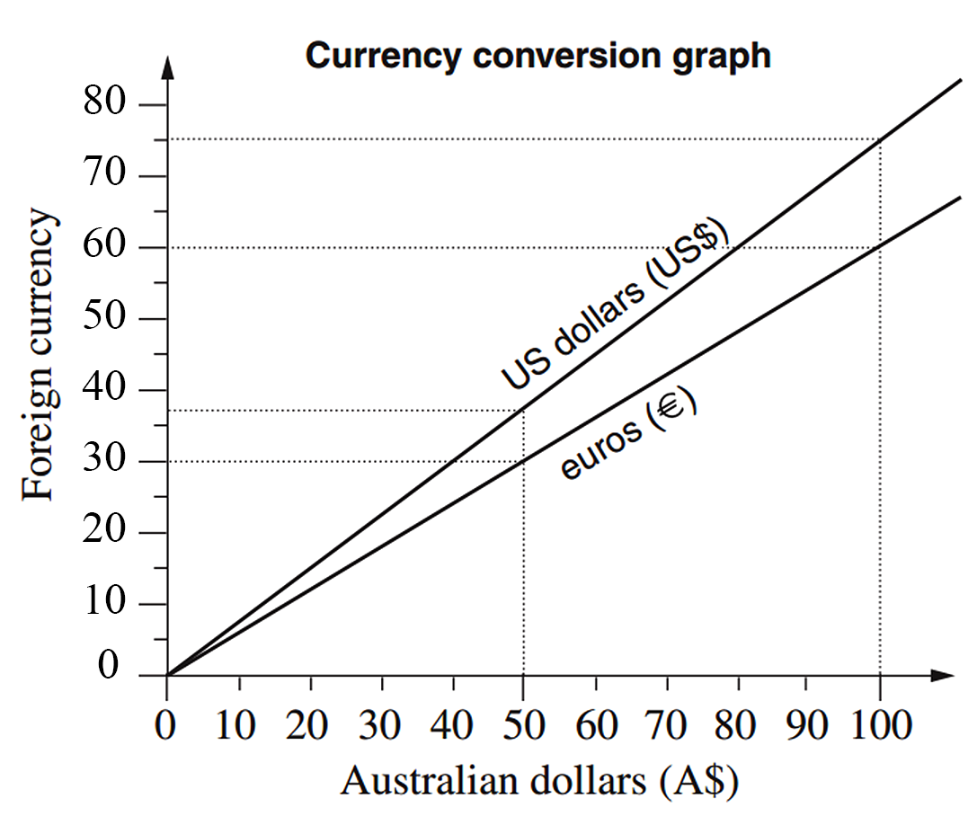 Conversion graphs can be used to convert from one currency to another.