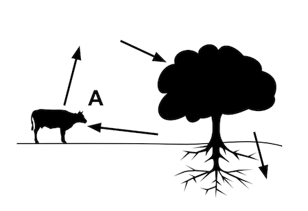 Which of the following steps of the carbon cycle is occurring at point A?