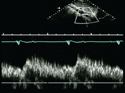 This pulse wave doppler finding was obtained in the descending aorta. What does it represent?