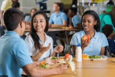 Generalmente los estudiantes comen en la escuela. Es un sándwich o una ensalada.