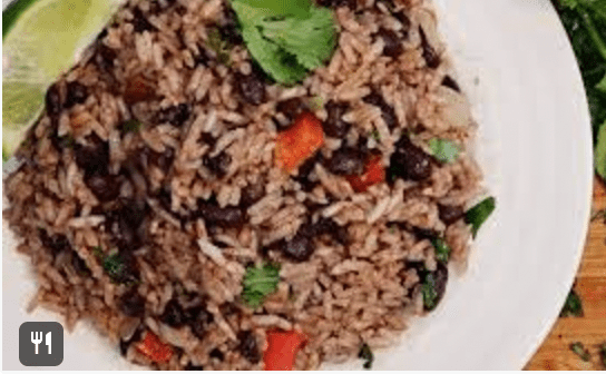 ES ARROZ CON FRIJOLES NEGROS. ES DE COSTA RICA. ES PERFECTO PARA EL ALMUERZO.