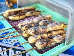 Filipino snack made of grilled skewered bananas, brushed with margarine and sprinkled in sugar.