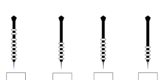 En la imagen de abajo, se envuelven diferentes cantidades de alambre alrededor de cada uno de los clavos.  Cuando los cables de cobre se conectaron a una batería, los cuatro clavos recogieron uno de los siguientes clips.