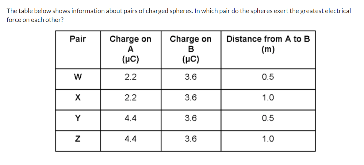 Este par de esferas ejerce la mayor fuerza eléctrica entre sí.