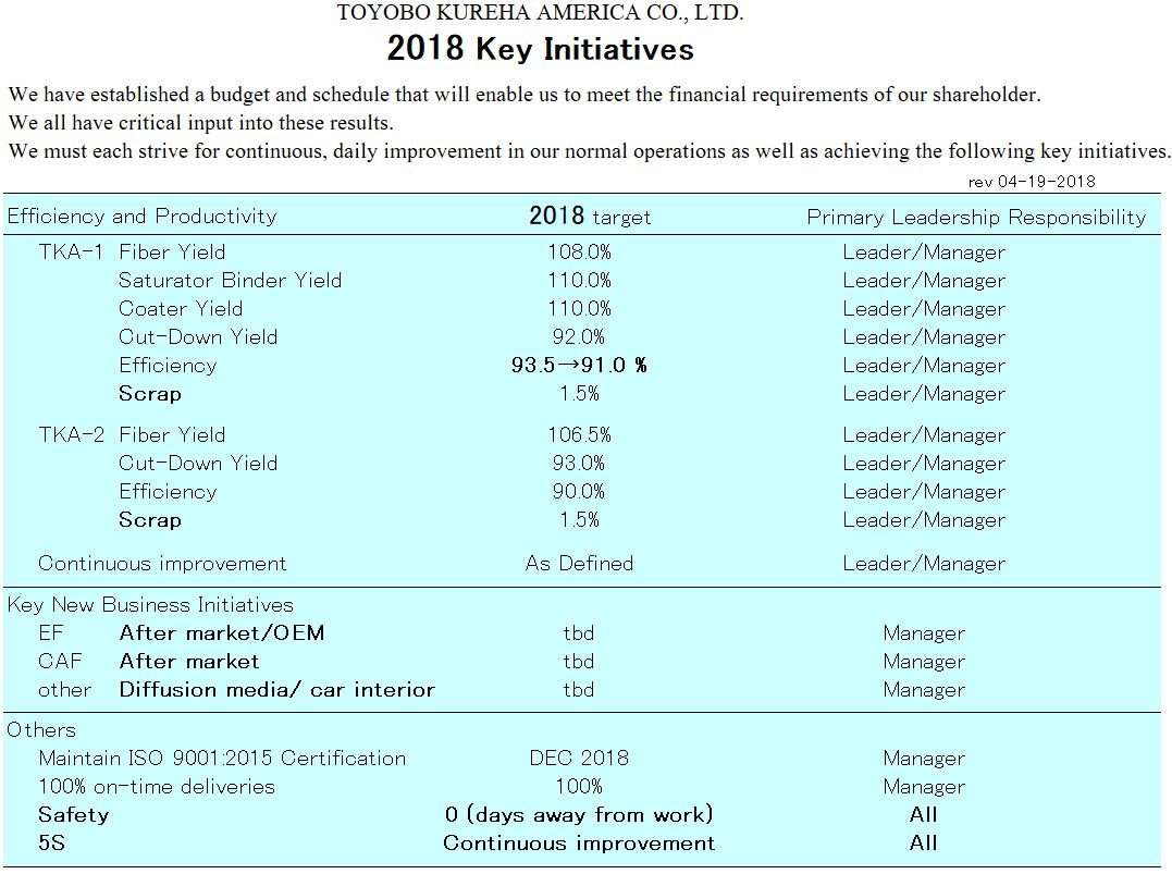 Each year, these targets are set by Management for ML Efficiency, CD Yields, and Scrap goals.
