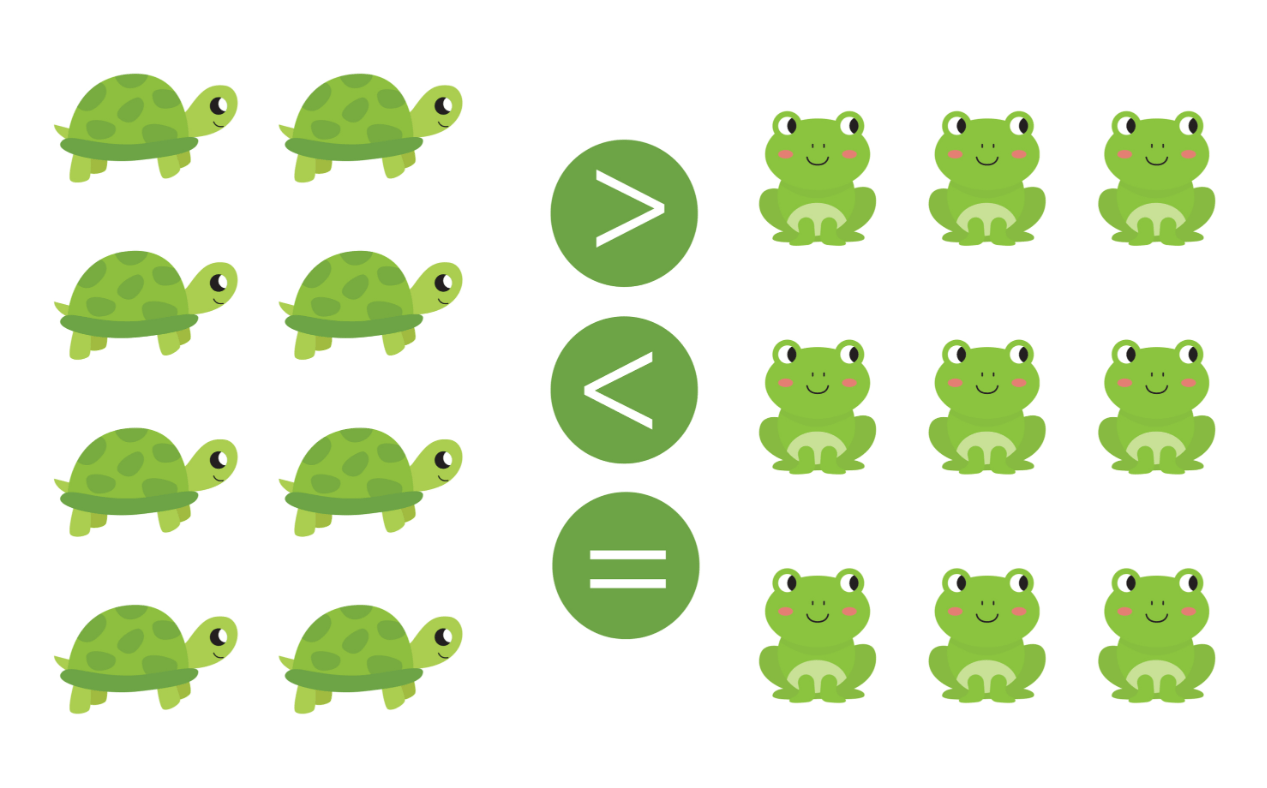 Are there MORE turtles than frogs, LESS turtles than frogs, or EQUAL turtles and frogs?