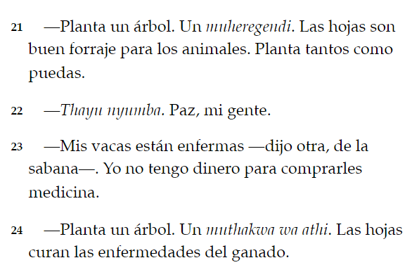 cuenta sobre la vida o eventos de la vida de Wangari (Mama Miti)