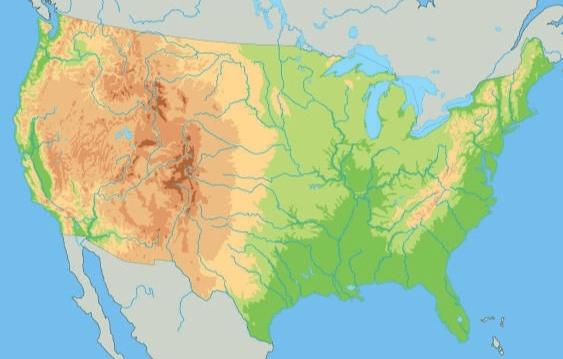 A type of map that depicts land features, like mountains and lakes.