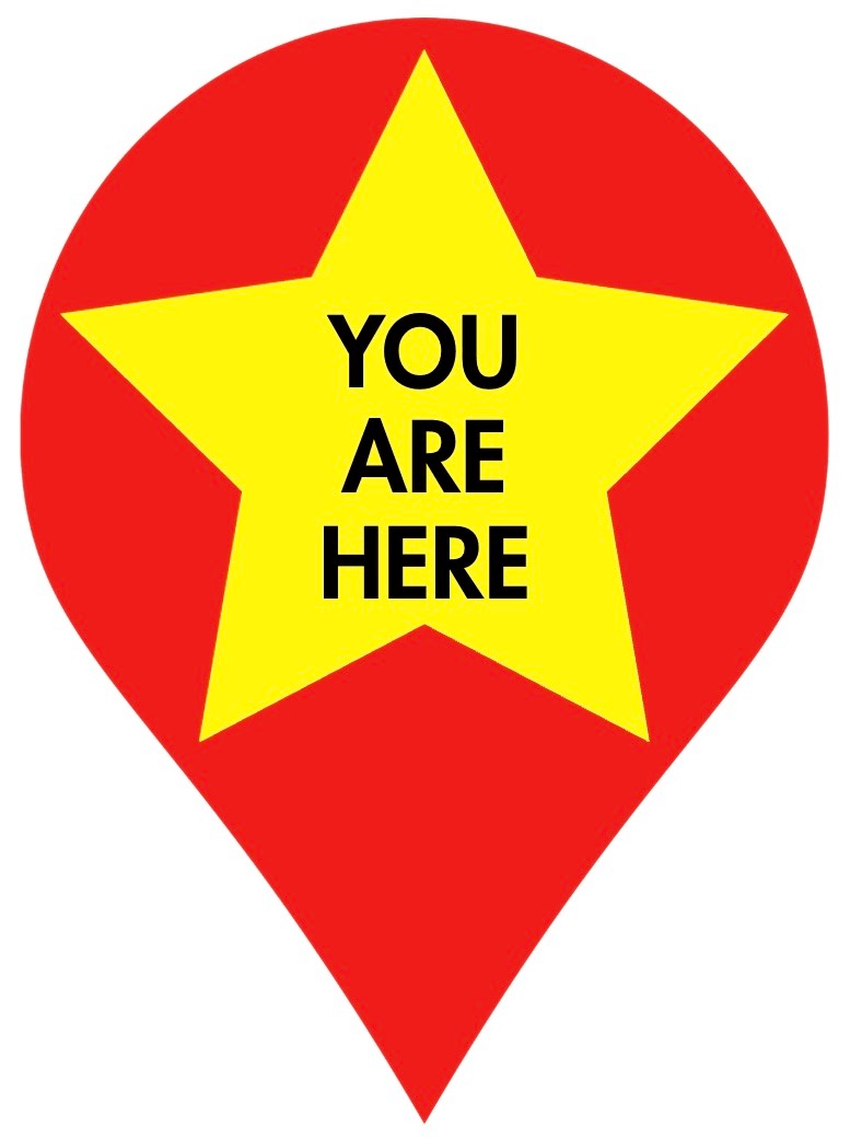 Typically marks your current location on a map.