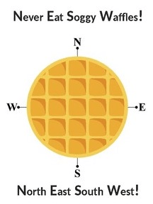 This mnemonic device helps remember the order of the cardinal directions on a compass rose.