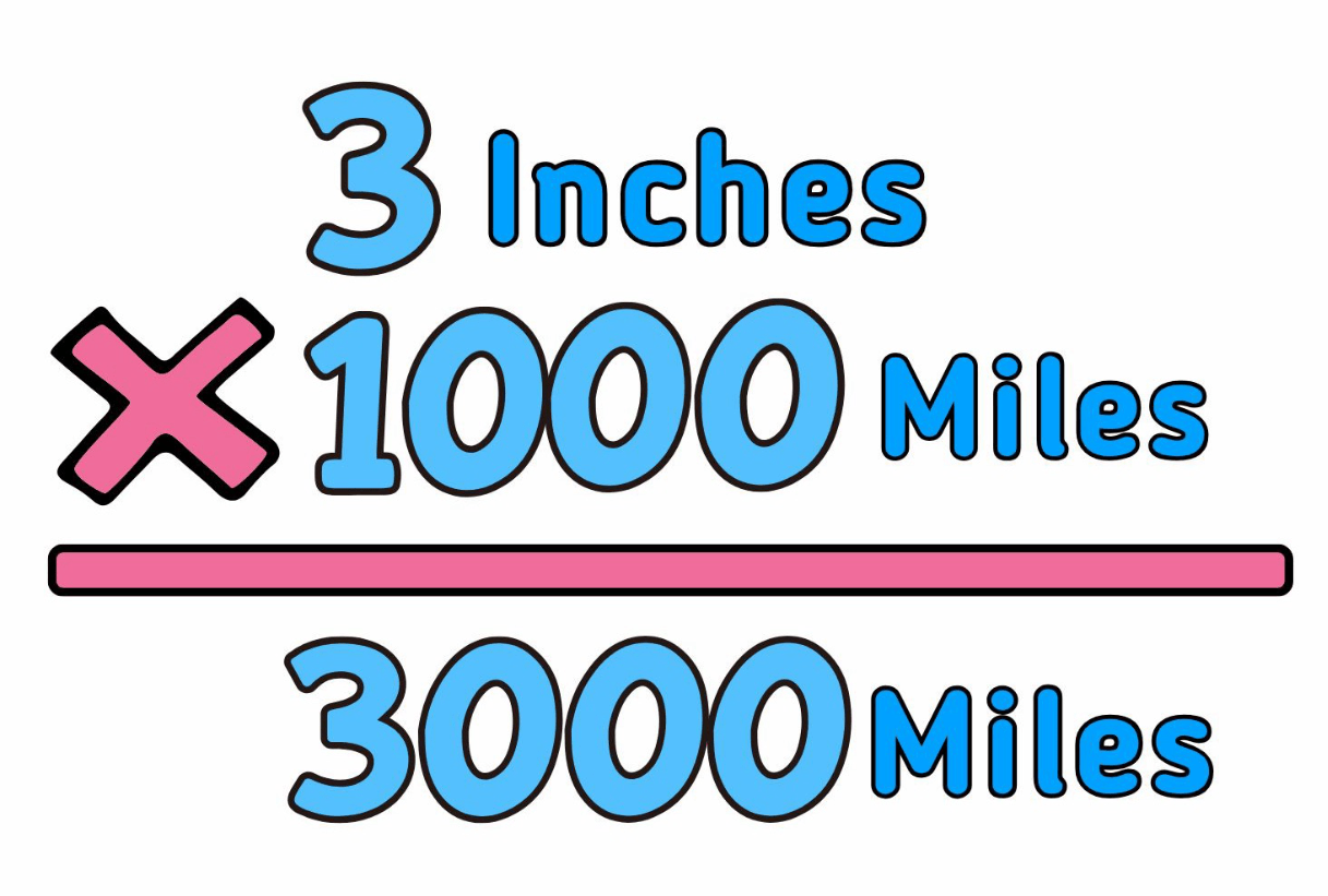 If a map scale shows that 1 inch equals 1,000 miles, and your trip measures 3 inches, how far will you travel?