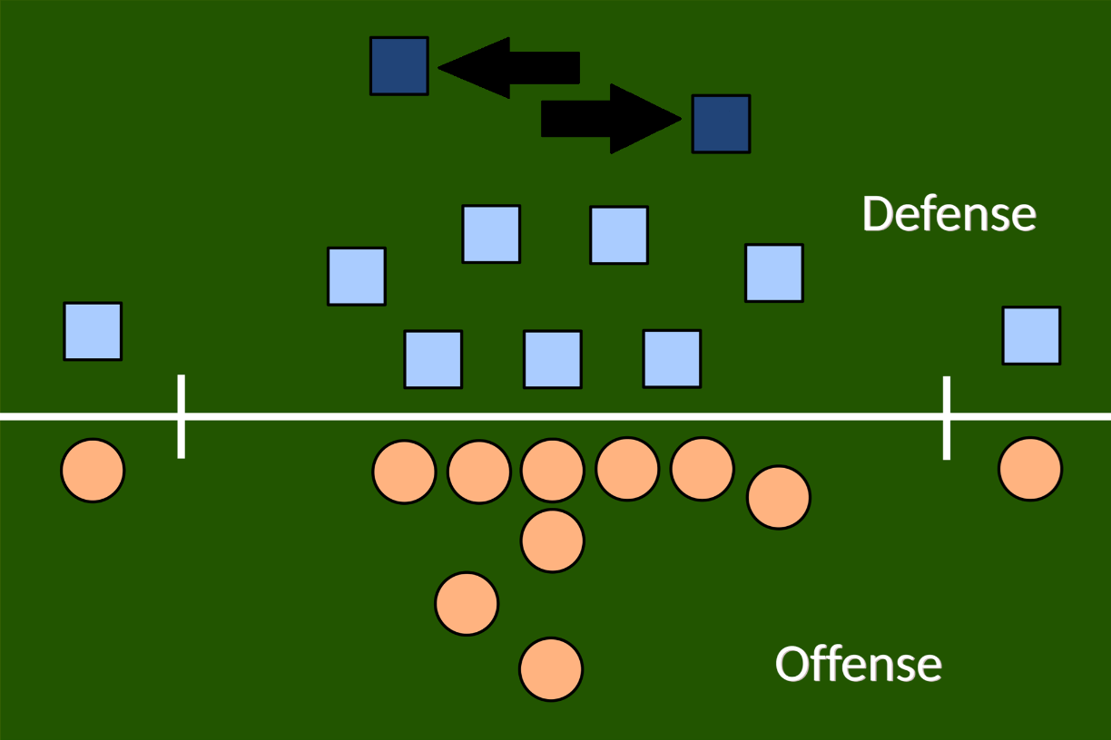 The two positions highlighted here are known as the "strong" and "free" this; their duties are pass coverage