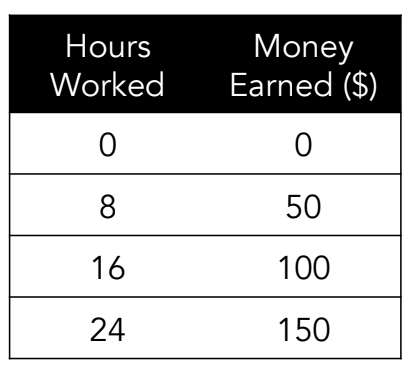 The table shows the wages earned by a cashier during a week. If an equation were written to describe the amount of money earned, which best describes the slope?