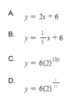 A scientist placed 6 bacteria into a petri dish. The number of bacteria in the petri dish doubled every 10 hours. Which equation models the number of bacteria, y, present in the sample after x hours?