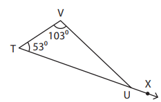 b) x = 20, because 103 + 53 = 156 and 180 - 156 = 24