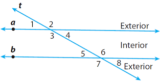 In each diagram, line r is parallel to line s, and line t intersects lines r and s.