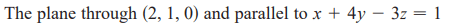 What is (x-2)+4(y-1)-3(z-0)=0 or x+4y-3z=6 ?