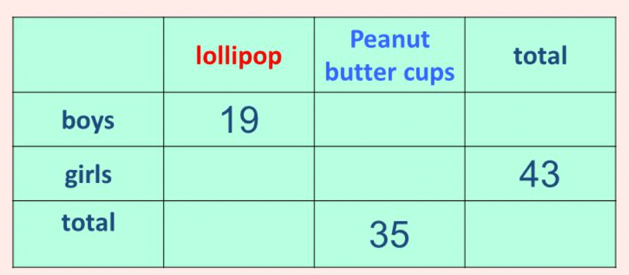 80 students participated in a surveying asking them if they liked Lollipops or Peanut Butter Cups better.