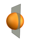 Identify the cross section of the sphere. Assume objects are perpendicular if they appear so.