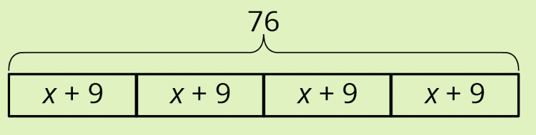 Write an equation for the given tape diagram. You do not need to solve for x.