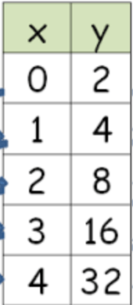Give an example of a linear function, exponential function, and quadratic function? (written, mathematical, visual, etc.)