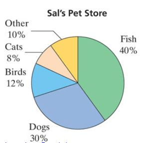 There are 150 animals in Sal's Pet Store. According to the circle graph there are this many dogs.