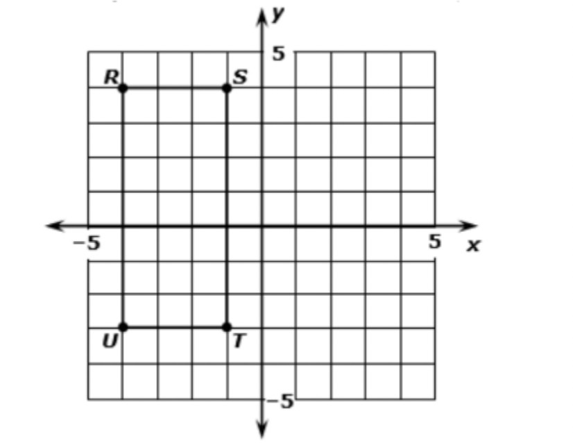Rectangle RSTU is rotated 90˚ counterclockwise about the origin to produce rectangle R'S'T'U'.