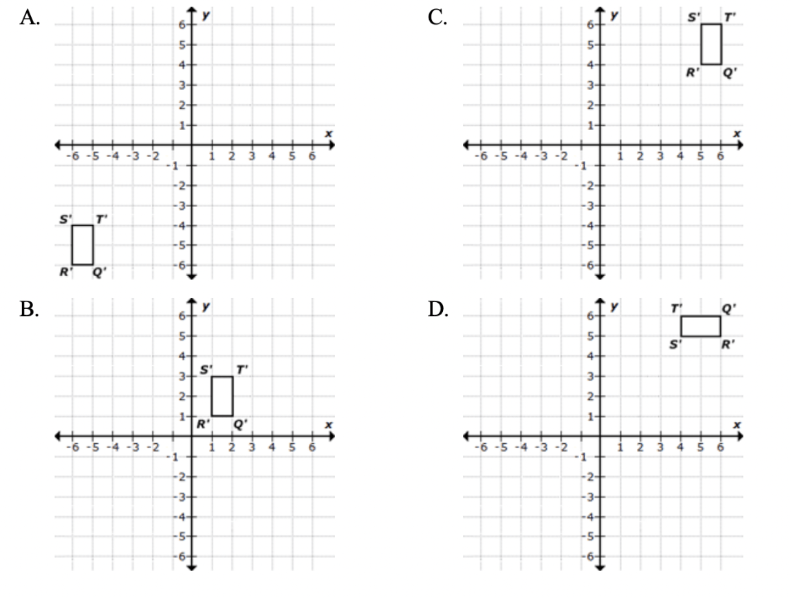 Which coordinate plane shows Q'R'S'T', the image of QRST after a rotation of 180 degrees about the origin?