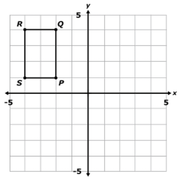 Rectangle PQRS is graphed on a coordinate plane with vertices P −2, 1 , Q −2, 4 , R −4, 4 , and S −4, 1 , as shown below.