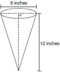 Find the Volume? The formula is:1/3 x π x r2 x h . But instead of using pie use 3.14. You may use a calculator. Last thing, 8 is not the radius it is the Diameter you need half of the diameter.