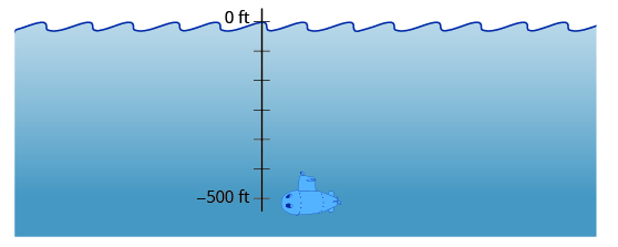 A submarine descends 500 feet below sea level.