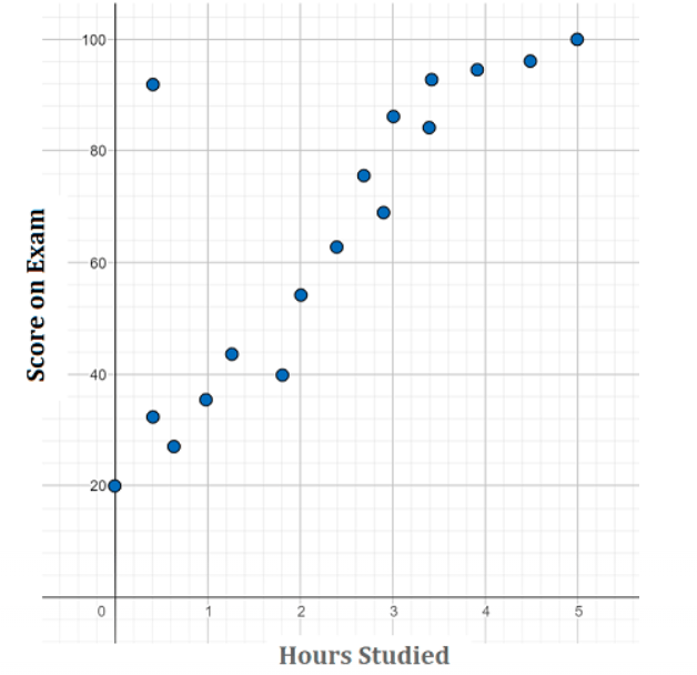 Relationship: As the number of hours studied increases, scores on exams also increased