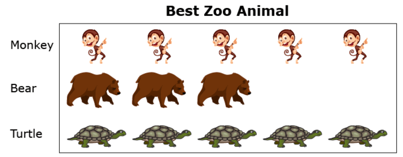 C. The same amount of people chose Monkeys and Turtles as their favorite zoo animal. (5)
