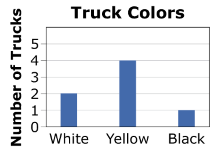 Write a number sentence that shows how many more Yellow Trucks than White Trucks that Emmett saw.