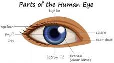 iris, pupil, cornea, eyelid, eyelash, sclera,