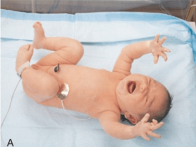 Signs of this condition in a newborn include nasal flaring, grunting, intercostal retractions, and cyanosis