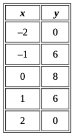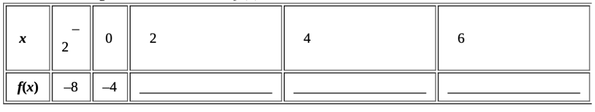 The table shows the relationship of x to y. Where is the y-intercept located at?