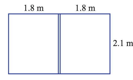 A sliding door has two glass panels. Each of these is 2.1 m high with a breadth of 1.8 m. How many square metres of glass are needed?