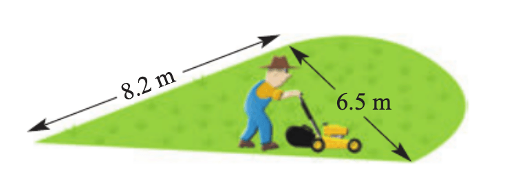 A lawn is made up of a semicircle with diameter 6.5 m and a triangle of length 8.2 m, as shown. Find the area of lawn, correct to 2 decimal places.