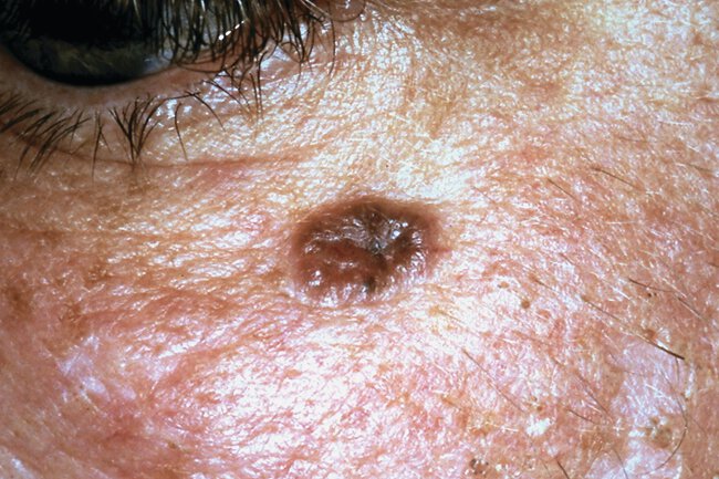 A 65-year-old woman is evaluated for a mole beneath the right eye that has been present for several months but appears to be growing.