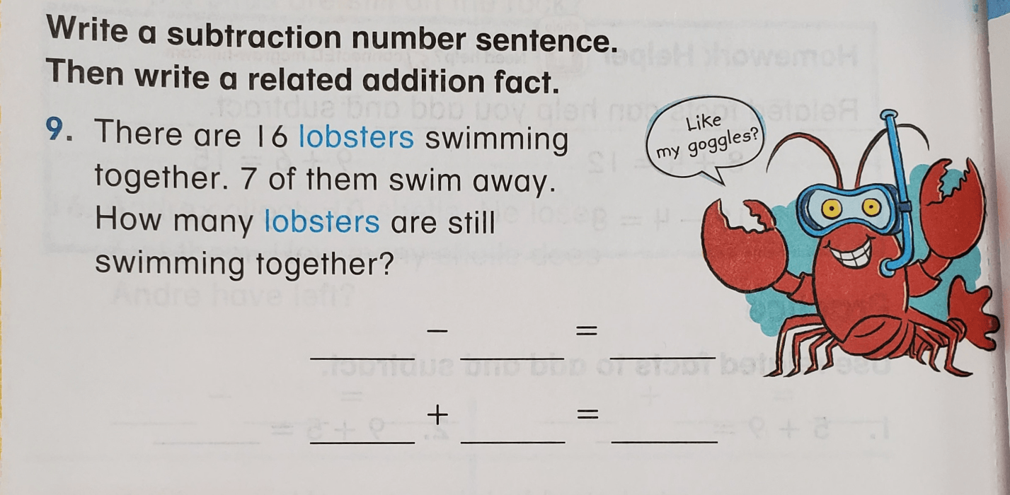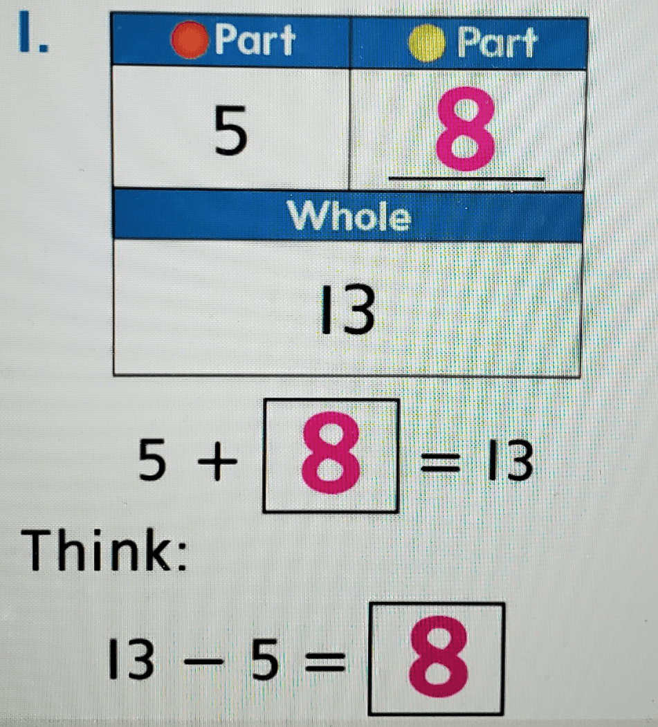 2 + 3 = 5    4 - 2 = 2           7 + 8 = 15    15 - 8 = 7